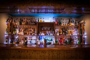 In 2013 we had our basement completely gutted and renovated - which was a great excuse to build a bigger, better Tiki Bar! Tiki Bar 3.5 was largely based on the 3.0 design but features more display shelving, a dedicated ice maker, a soda gun, foot rail, purse hooks, all-led lighting and the nicest-looking bar top we've achieved to-date.